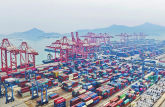 海關總署1月14日發(fā)布數(shù)據(jù)顯示,2025年,我國貨物貿易進出口總值45.47萬億元,同比增長3.8%,自2017年起連續(xù)9年保持增長。圖為1月14日拍攝的江蘇連云港港集裝箱碼頭外貿裝卸作業(yè)區(qū)。