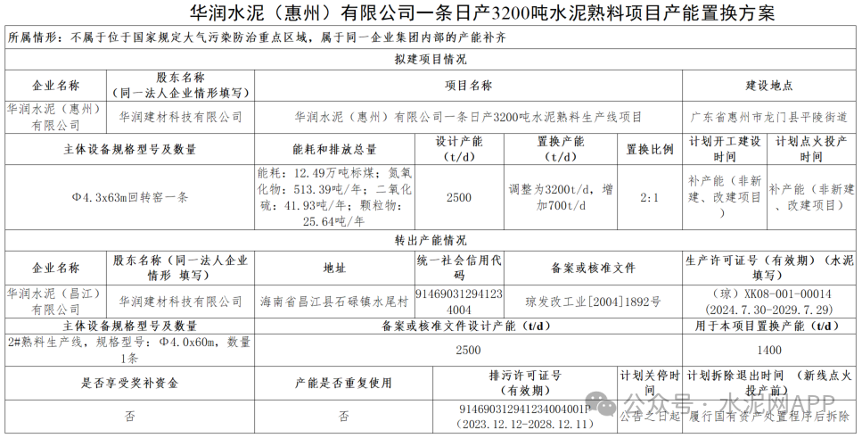 近日,廣東工信廳發(fā)布兩則華潤水泥補充熟料產(chǎn)能方案公告。置換方案顯示,華潤水泥(昌江)公司退出一條2500t/d熟料生產(chǎn)線,其中1100t/d產(chǎn)能用于華潤水泥(陽春)公司一條2500t/d熟料線,補齊后產(chǎn)能3050t/d,置換比例2:1;剩余1400t/d產(chǎn)能用于補充華潤水泥(惠州)公司一條2500t/d熟料線,補齊后產(chǎn)能3200t/d,置換比例2:1。