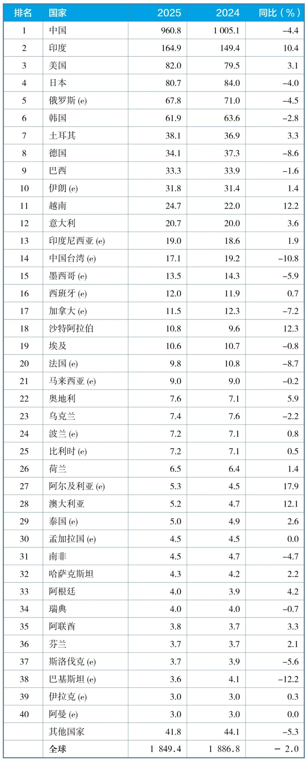 表3:2025年全年全球粗鋼產(chǎn)量