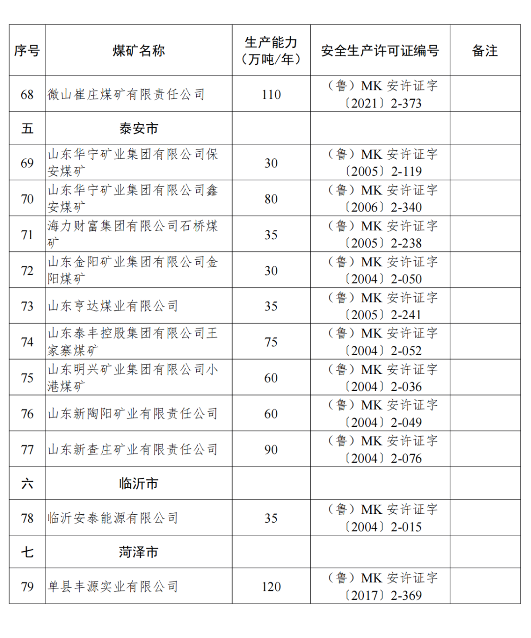 山東省有依法生產建設煤礦80處,產能規(guī)模11437萬噸年